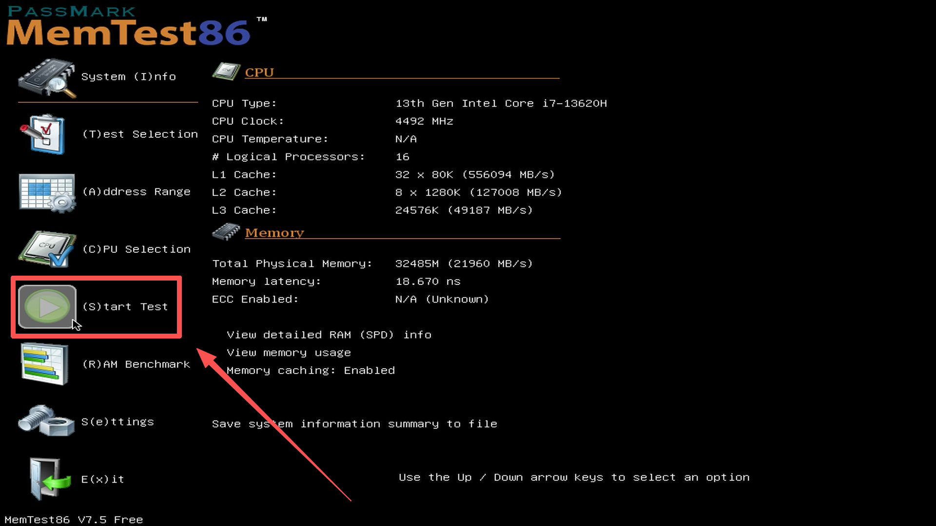 Starten Sie den Test. Stecken Sie den USB-Stick in den zu testenden Computer, starten Sie ihn und rufen Sie das Boot-Menü auf (mehrfach F7 drücken), wählen Sie das Booten vom USB-Stick; Der Standardtest läuft 4 Durchgänge, ein vollständiger Test kann mehrere Stunden dauern und zeigt letztendlich eine „PASS“-Meldung an. Wenn der Speicher beschädigt ist, wird sofort ein Fehler angezeigt. Bitte haben Sie Geduld.