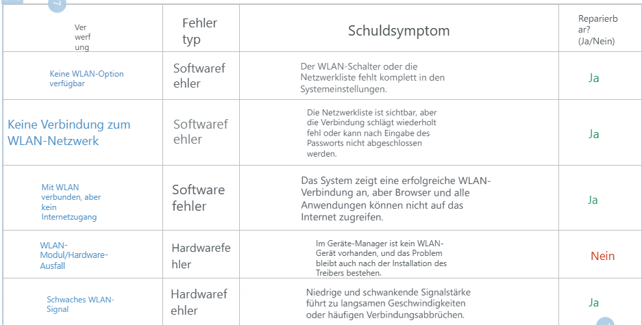 Ein schwaches WLAN-Signal ist höchstwahrscheinlich auf eine Fehlfunktion der WLAN-Antenne der Netzwerkkarte zurückzuführen, beispielsweise darauf, dass die WLAN-Antenne verrutscht, abgeklemmt oder verformt ist.