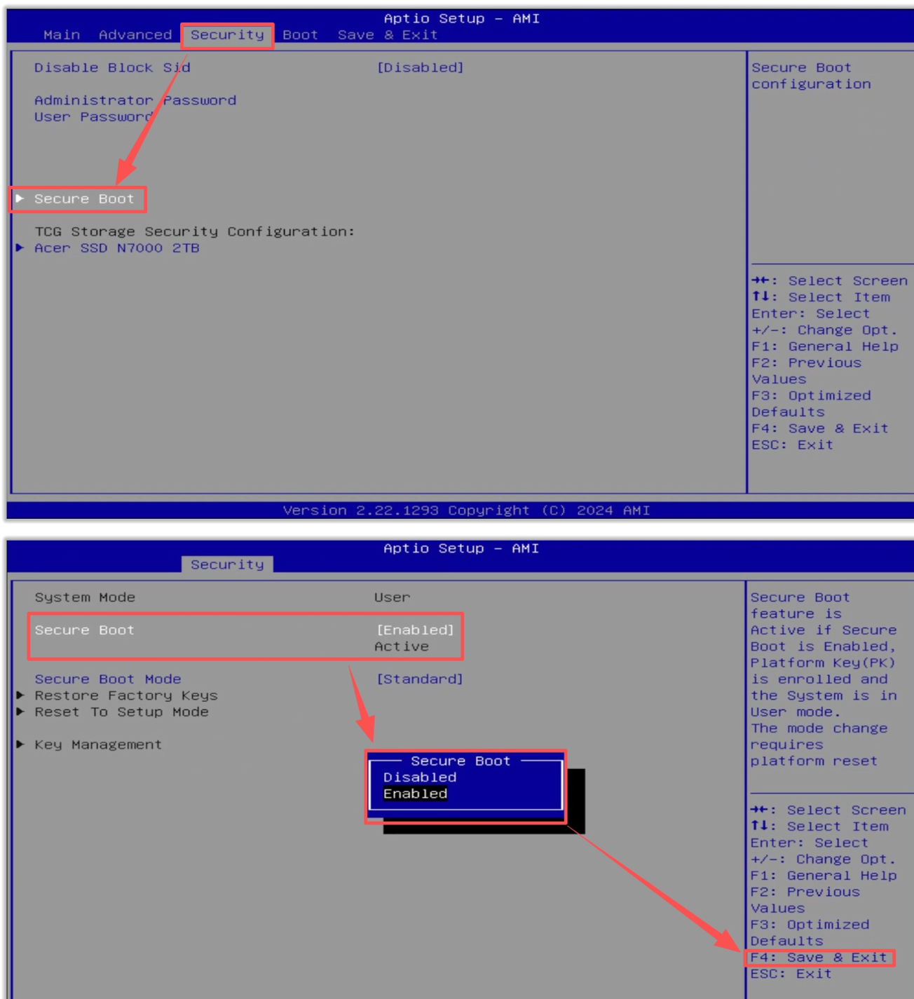 - Suchen Sie die Option Secure Boot und schalten Sie sie aus.