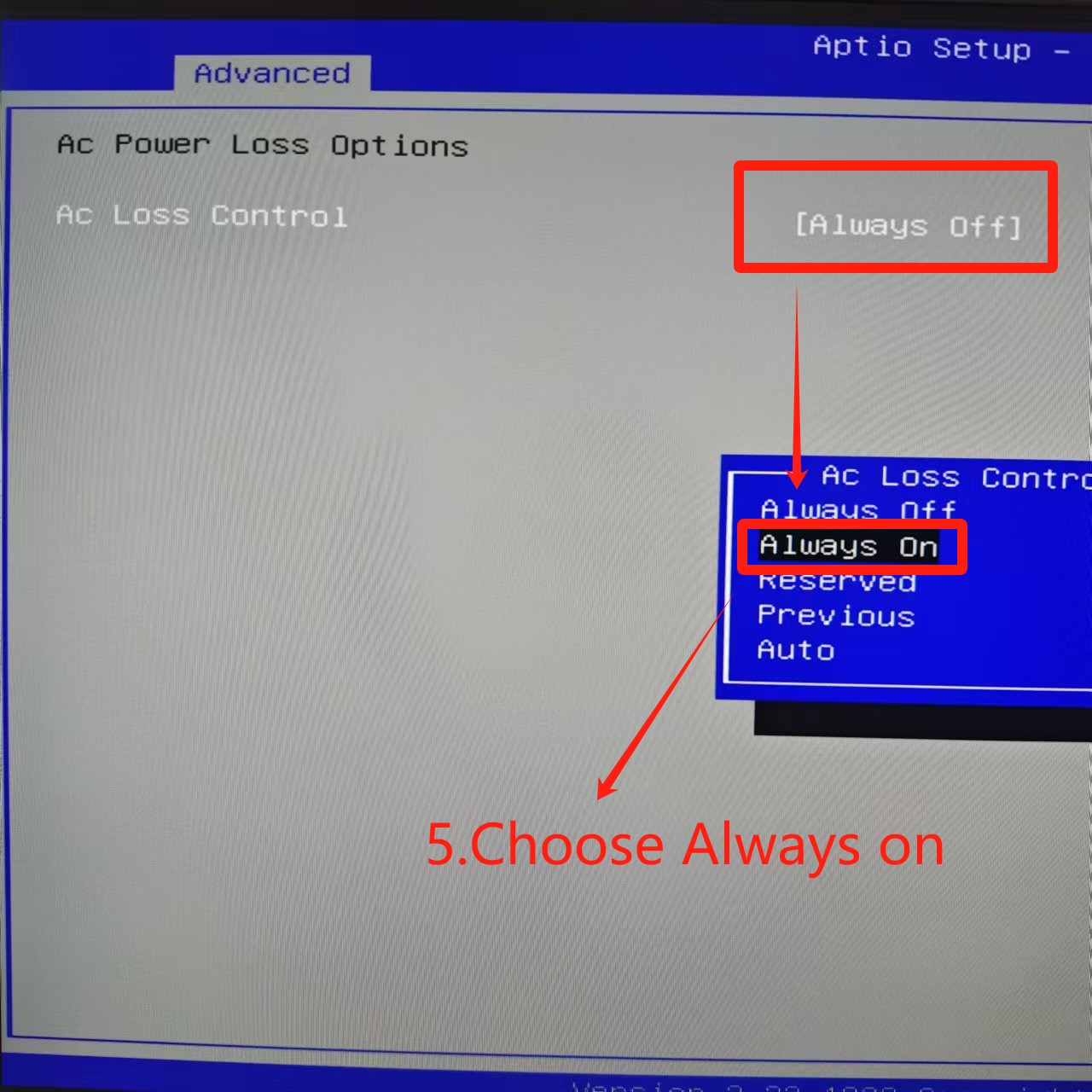 BIOS➡️Advanced➡️AMD CBS➡️FCH Common Options➡️Ac Power Loss Options