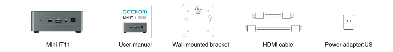 | What’s In The Box | 1 × Mini IT11 Mini PC 1 × VESA Mount 1 × Power Adapter 1 × HDMI Cable 1 × User Guide 1 × Thank You Card |