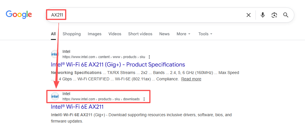 If you are using an Intel brand network card, you can directly search for the network card model in your browser and select the official Intel website to obtain the latest driver.