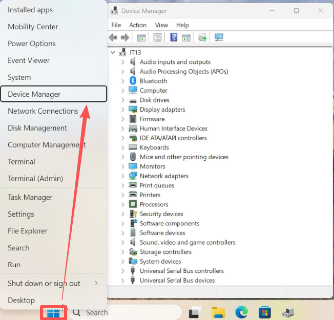 Open Device Manager (Right-click "This PC" → Manage → Device Manager, or Win + X → Device Manager).