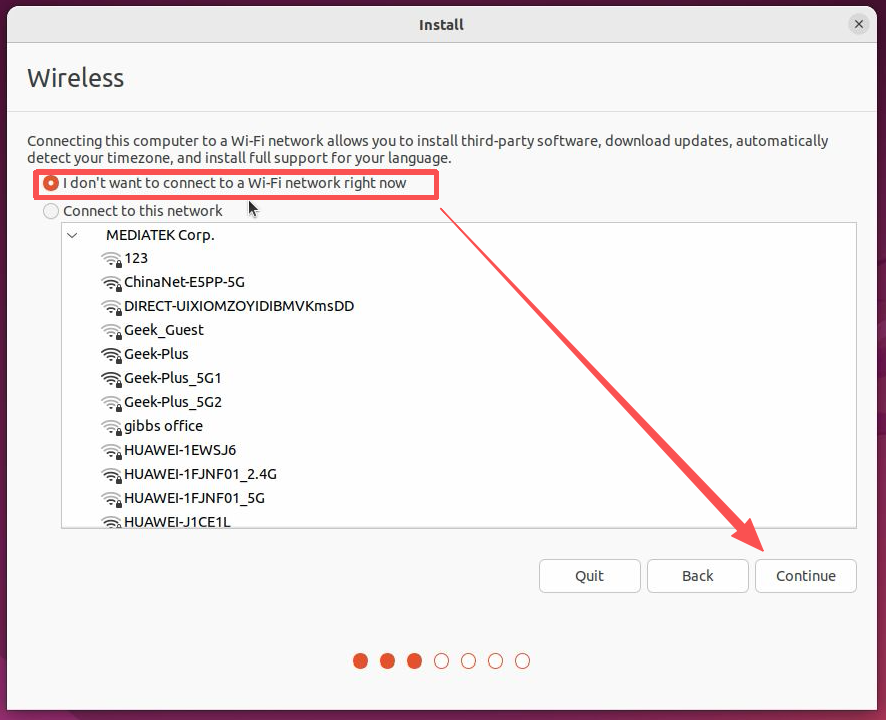 Select “I don’t want to connect to a Wi-Fi network right now” and proceed to the next step.