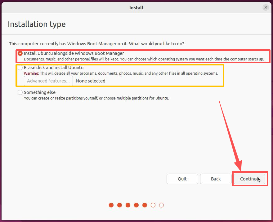 Section1:If you want to install both Windows and Ubuntu on a single SSD, select: Install Ubuntu alongside Windows Boot Manager.