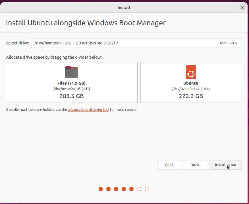 The dual system setup is complete. Boot up again and start using the Ubuntu system.