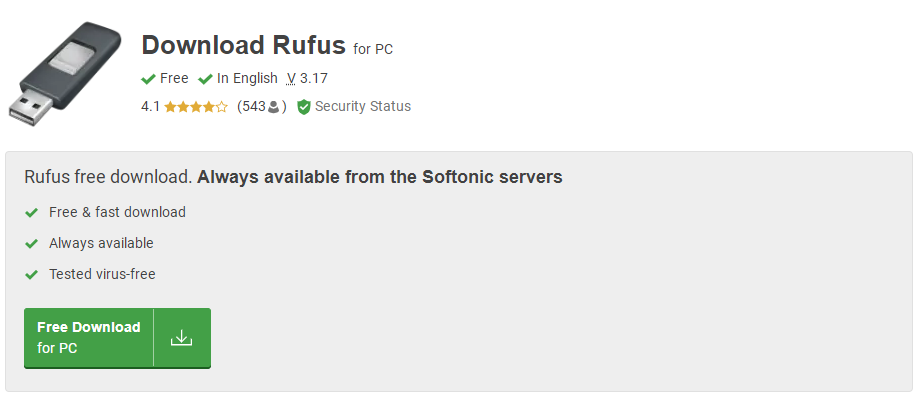 After downloading the system you need to your USB drive, we also need a tool:https://rufus.en.softonic.com/download