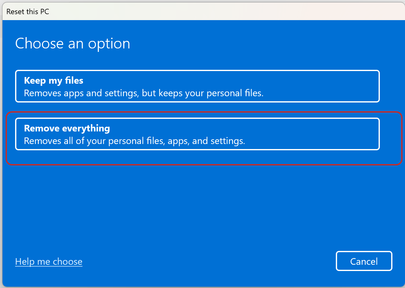 You can also refer to the Microsoft official document: Reset your PC - Microsoft Support