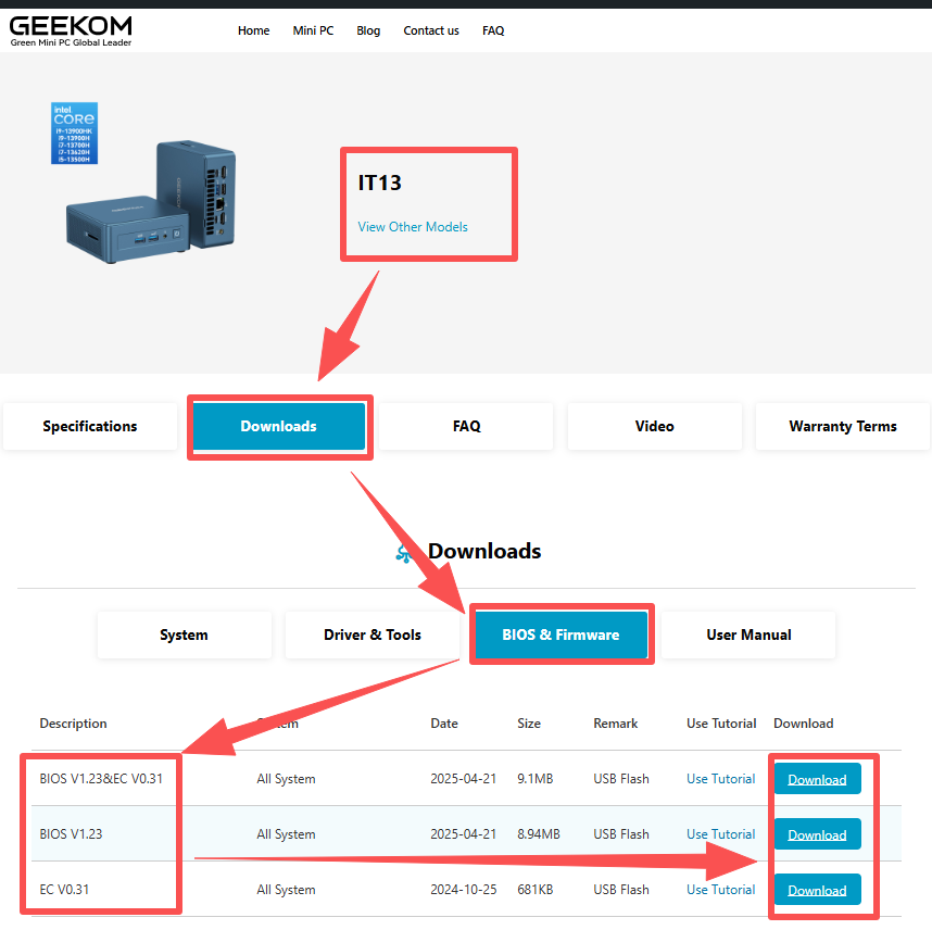 - Haga clic para visitar el sitio web de soporte técnico de GEEKOM para descargar los archivos específicos del producto.