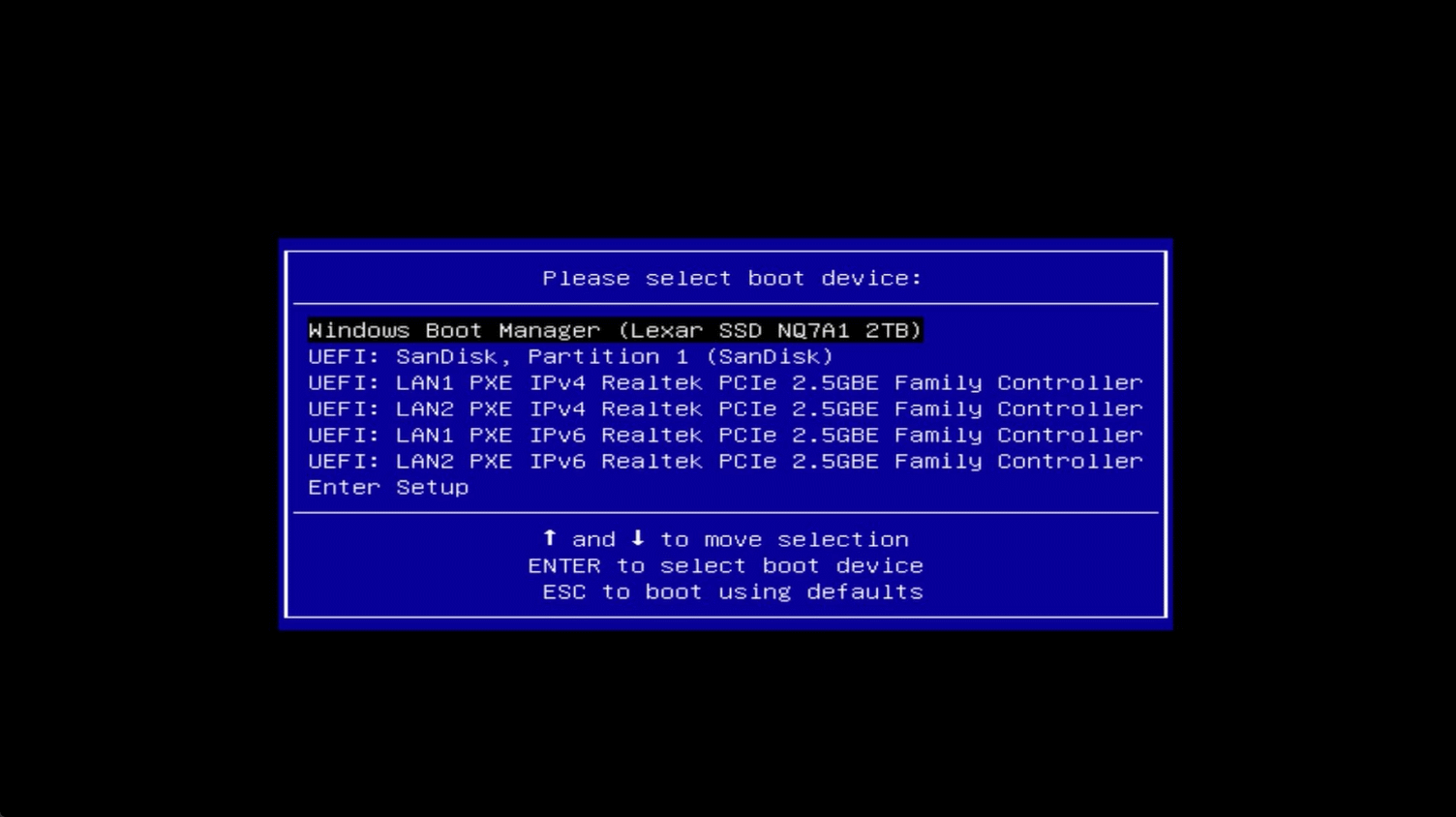 - Lorsque l'appareil est allumé ou redémarré, appuyez plusieurs fois sur la touche F7 pour accéder à l'interface de sélection du périphérique de démarrage.