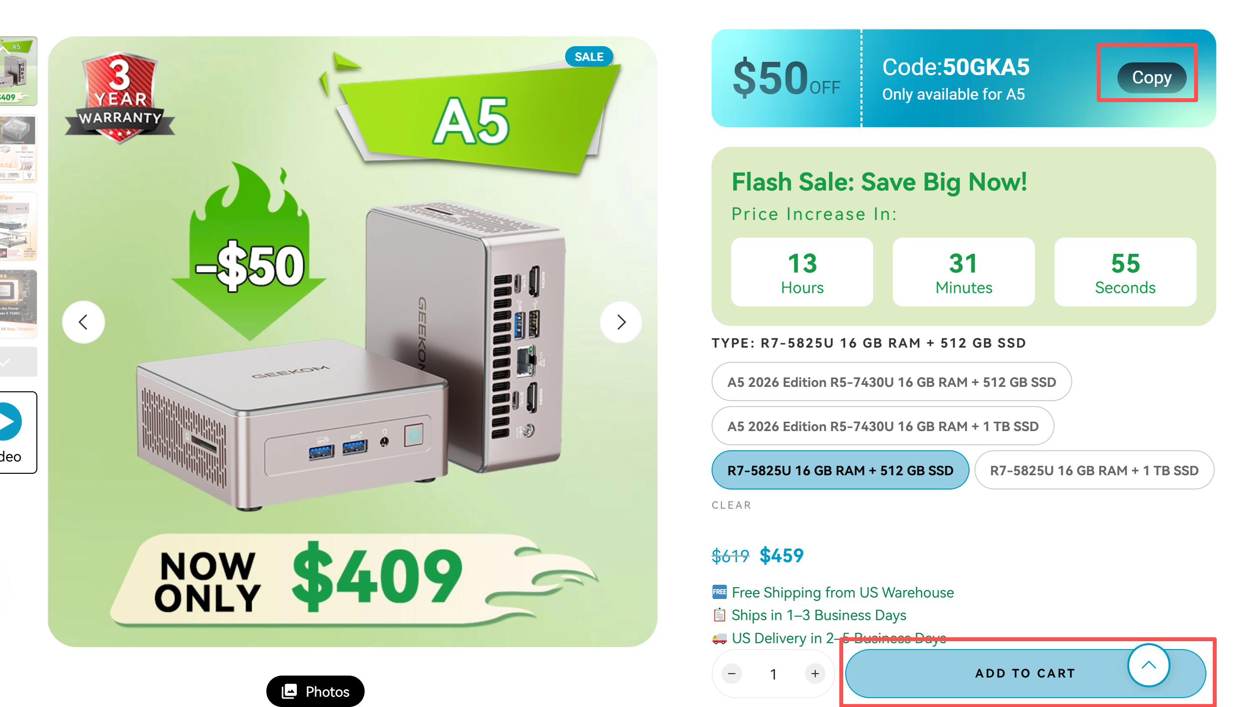 La page produit affichera la promotion en cours et fournira le code de réduction correspondant. Le prix affiché sur l'image du produit est le prix remisé après utilisation du code (hors taxes). Vous pouvez saisir le code de réduction correspondant lors du paiement pour obtenir le prix final remisé.