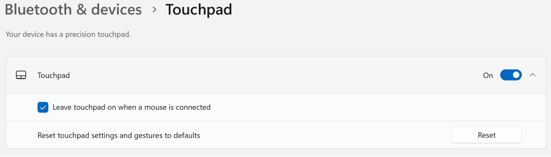 e. Ripristina impostazioni predefinite: espandi l’opzione "Touchpad" e clicca su "Ripristina" per riportare tutte le impostazioni del touchpad ai valori di fabbrica.