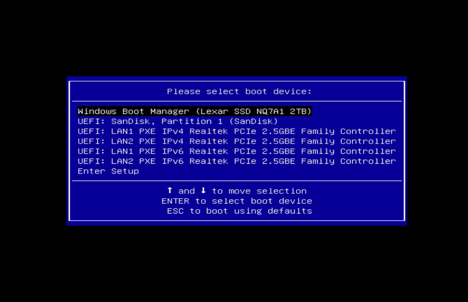 - デバイスの電源がオンまたは再起動したら、F7キーを繰り返し押してブートデバイス選択インターフェースに入ります。
