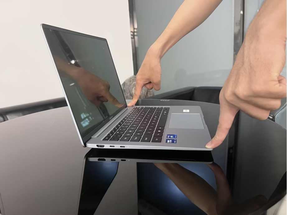Положите ноутбук на ровную горизонтальную поверхность, аккуратно нажмите указательным пальцем на четыре точки корпуса (как показано красными кругами на рисунке 1), чтобы найти ножку, которая не касается поверхности. Из-за разных форм ножек, ножка с одной стороны, не касающаяся поверхности, обычно является одной из двух коротких ножек (как показано на рисунке 2). На рисунке 3 показана ножка, не касающаяся поверхности, на неисправном устройстве.